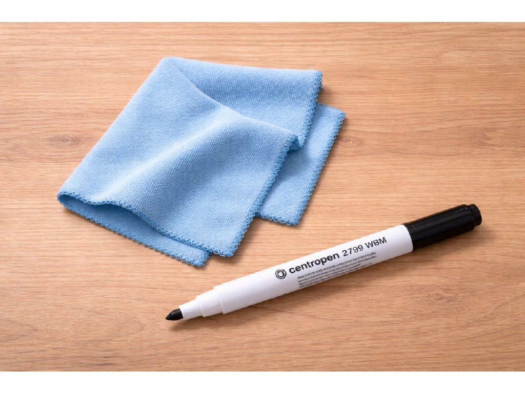 Doporučujeme používat mazací (whiteboard) fixy na bázi vody. Ty lze snadno setřít hadříkem, houbičkou nebo vlhčeným ubrouskem.
