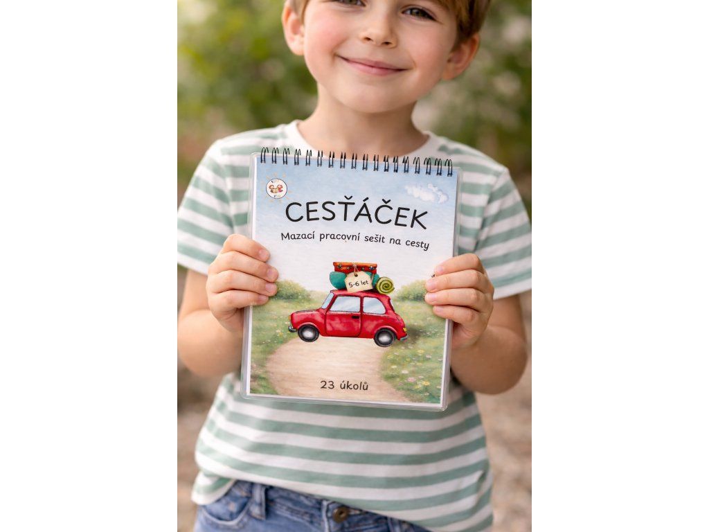 Cesťáček je mazací pracovní sešit, ke kterému se děti mohou vracet znovu a znovu. Úkoly nejsou jednorázové – dítě zkouší, přemýšlí, opravuje a postupně si upevňuje dovednosti.