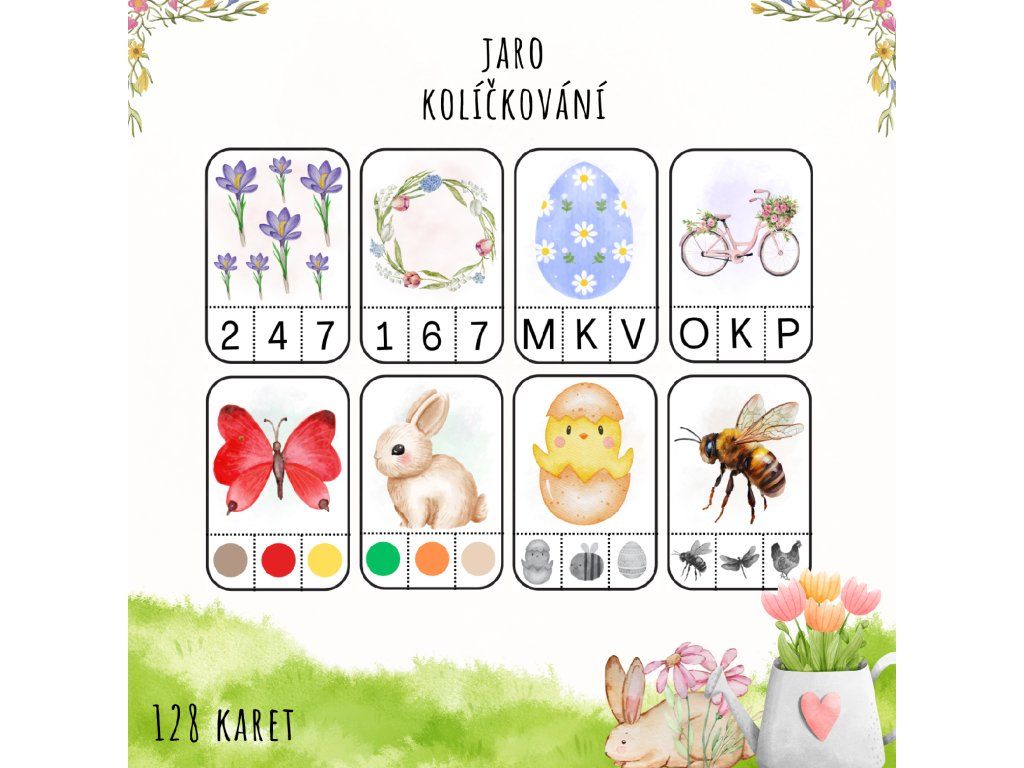 Soubor obsahuje celkem 128 kartiček určených ke kolíčkovací aktivitě